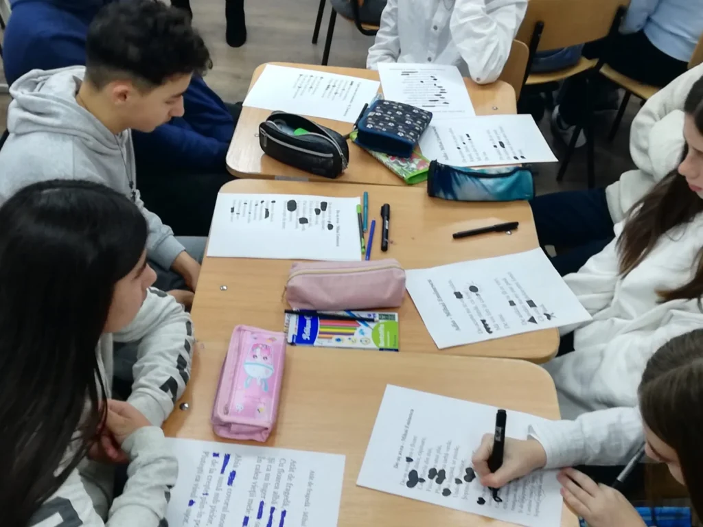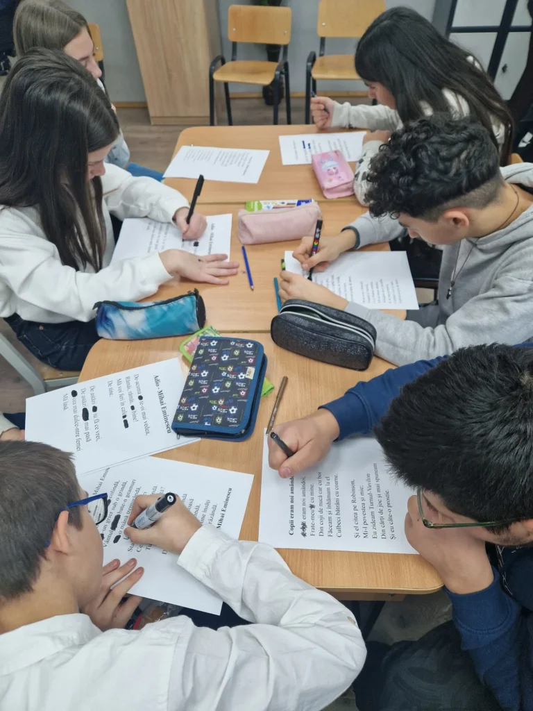 În loc să scrie versuri de la zero, elevii primesc pagini cu poezii de Eminescu (printate special).